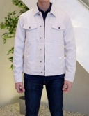 TOPJ02001 Poly Suede Hidden Button Trucker Jacket Ivory (XL, XXL ONLY)